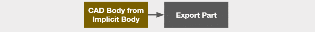 The Export Part block is used to export CAD parts. Implicit bodies must be converted to CAD bodies before exporting. This can be done in one of two ways: