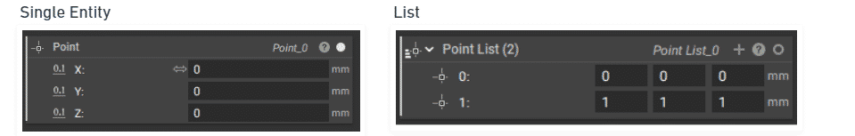 All blocks in nTop can exist as singular entities or as a list. A list contains multiple items of the same type in a single block, like a list of points. When a process runs on a list block, it runs the process on every list item. Working with list blocks is called List Processing.