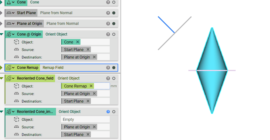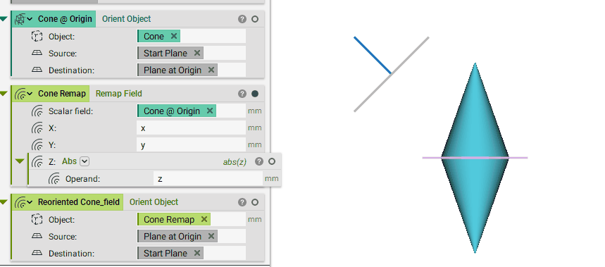 Note we could have also performed this Orient Object operation on the implicit body of the remapped cone rather than just its scalar field.