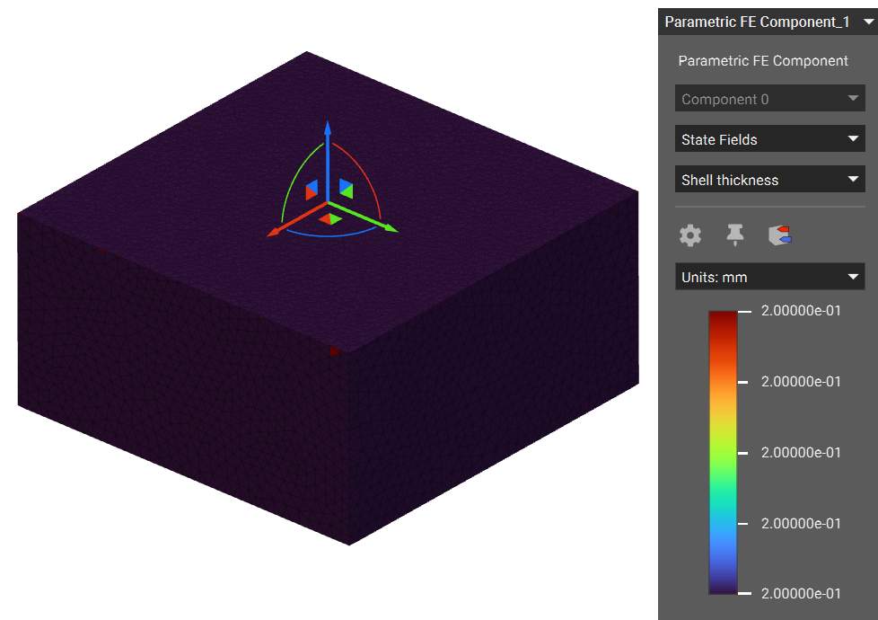 State Fields allow you to view the values of the design parameters across the design space before performing the field optimization. In this case, the optimizable input is shell thickness, which is constant based on the Initial Shell Thickness input.