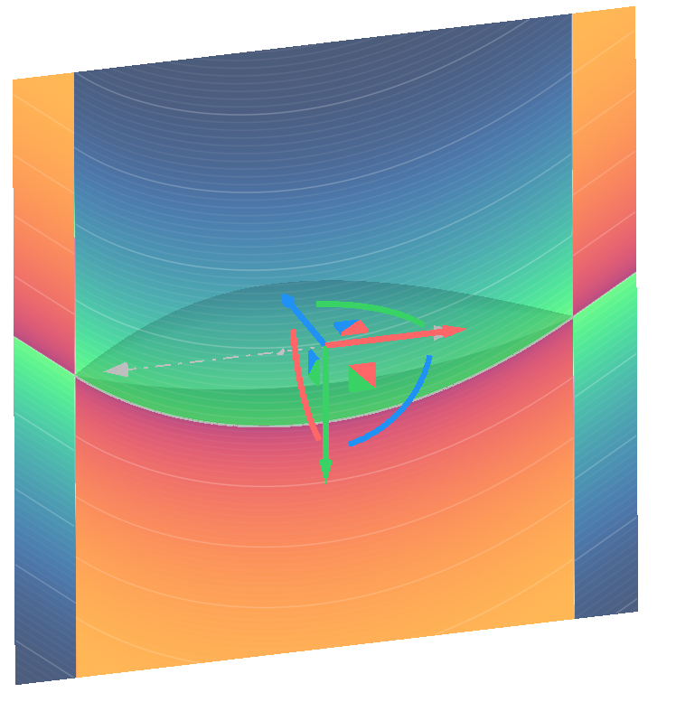 Now we’ve established conics to represent the top and bottom surfaces of our fuselage. To convert these distance fields into implicit geometry, we’ll establish bounds and use a series of booleans to isolate and union our fields.