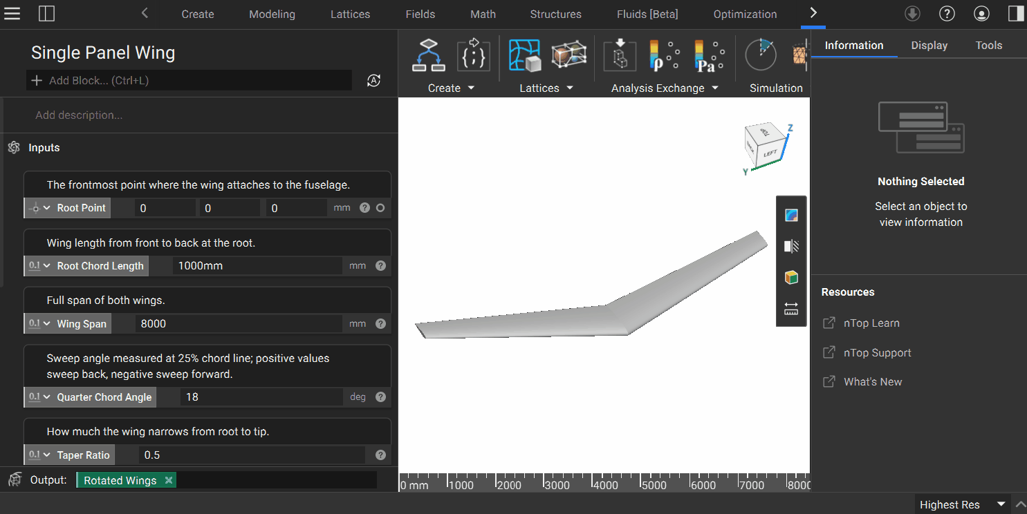 Now we’ve finalized the Horizontal Stabilizers custom block which we can later nest in an Empennage block. This approach demonstrates how nTop’s modular design philosophy allows us to efficiently adapt existing solutions for new applications while maintaining the parametric control that makes our aircraft models flexible and reusable.