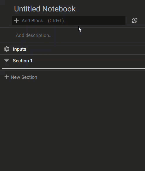 - Outline: The Outline is a list of all top level blocks in your notebook (i.e. It does not include blocks nested inside another block) that are separated by your notebook sections. When you select a block from the list, it is highlighted in bright blue. If this block is used downstream in another block, the parent block will be highlighted in a darker blue.