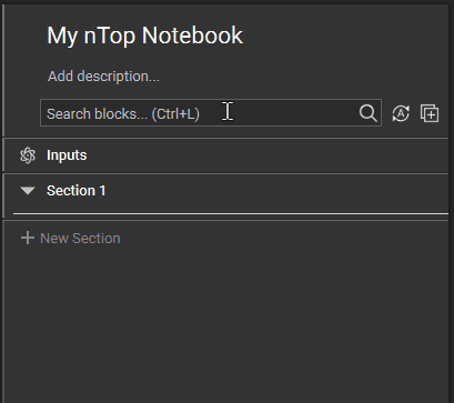 To perform operations in nTop, you can add Blocks to the Notebook via the Ribbon or the Search Bar: