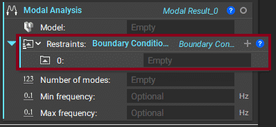 Note: Only provide restrained regions into the boundary condition list. Removing the optional Restraints input leads to a free-free Modal Analysis.