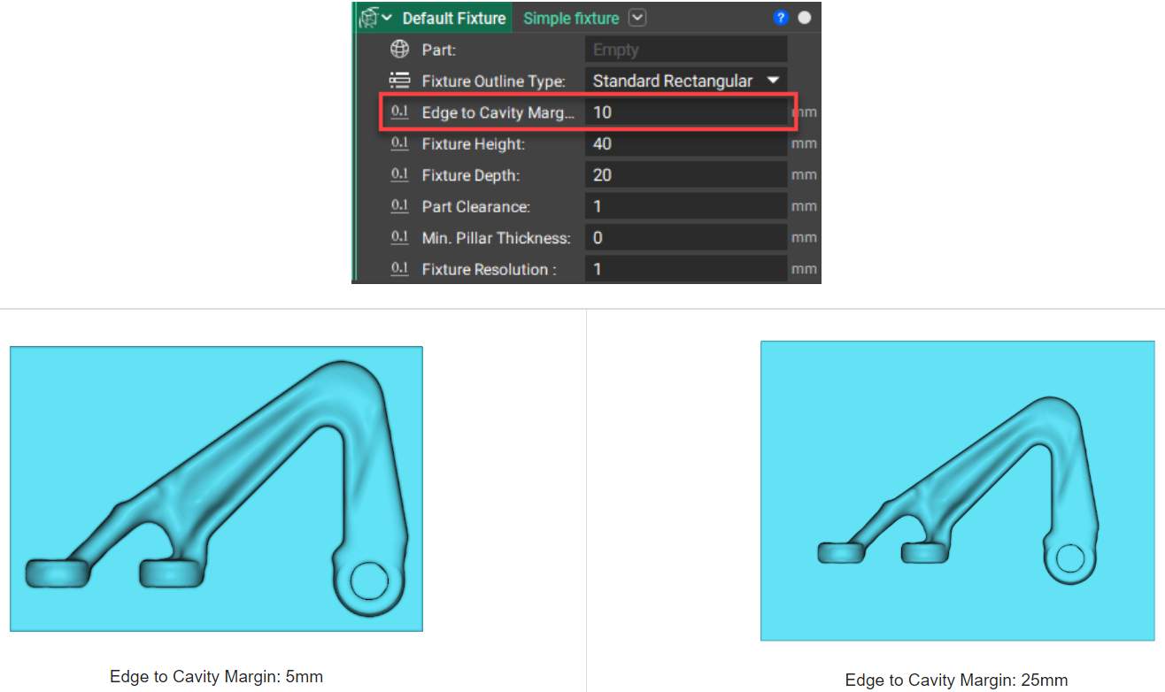 The Part Clearance is the clearance distance between the input part and the fixture. The clearance value should not be greater than the cavity detail parameter.