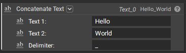 To combine text, you can use the Concatenate Text block. Our CB Mesh Export block, shown in the Commonly Used Custom Blocks lesson, uses this block to add a randomly generated number at the end of the name, so it does not overwrite the previously exported mesh when changing the workflow.