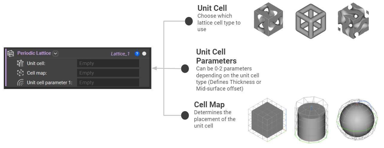 The Periodic Lattice block has three key inputs: Unit Cell, Cell Map, and Unit Cell Parameters. In the next few lessons, we will go into detail about these inputs and how to create a lattice using this block.