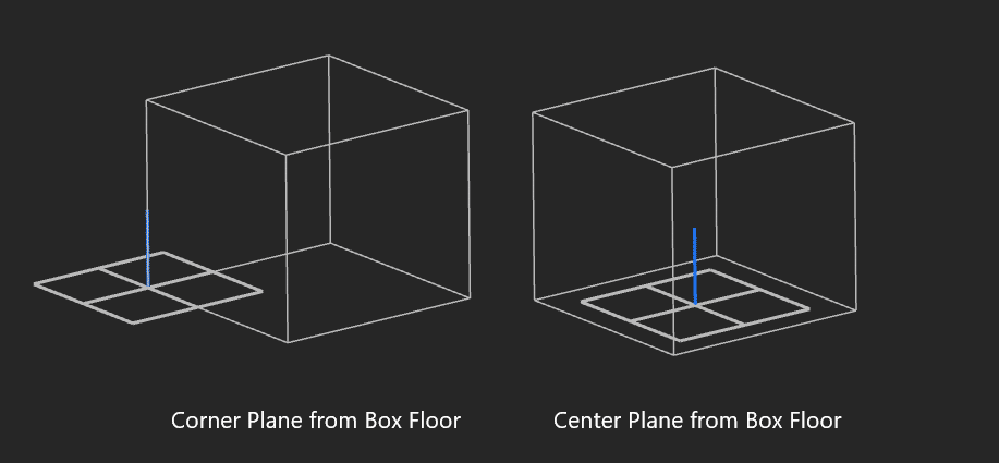 To define the build plane, you can use the Corner Plane from Box Floor or the Center Plane from Box Floor blocks using the bounding box or build volume described previously. You can then use this for ensuring your parts are located on the build plane, as many of our additive manufacturing blocks use a given build plane when orientating and placing your piece.