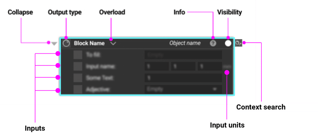 - – Properties: Accessible data from the block (center point, bounding box, etc.)