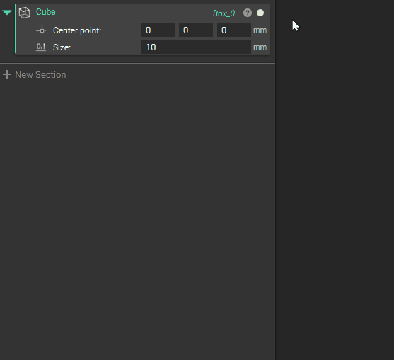 The Output Type of a block indicates its Type. Each Type has its own set of Properties, containing Property chips that can be added to the Notebook or brought into another block as input via drag and drop. Below is an example comparison of the Sphere and Box Type properties.